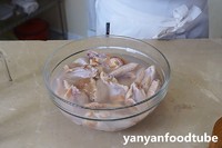 鸡翅洗净控水放在一个大碗里,然后倒入白葡萄酒和纯净水泡20分钟左右,半程翻动一下鸡翅。
