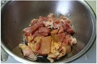 鸡肉或鸡腿肉带皮切小块,芋头去皮切成鸡肉一样的块