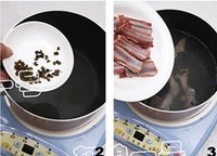 锅中水烧开后,先下花椒,接着下羊排焯水