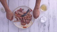 选用三四个月的童子鸡,洗净后切块,加少许盐、料酒、生抽,稍稍按摩后,冷藏腌制2小时;