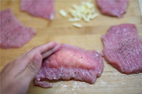 洗去表面的蒜泥渣渣,刀横切肉片不切断