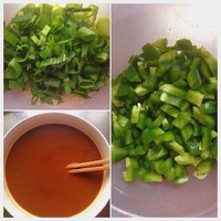 准备材料,打鸡蛋,豆瓣酱甜面酱和起加凉水,瘦肉切丝,青椒切碎,葱切葱花,喜欢吃鸡蛋的可以多放些鸡蛋,喜欢吃肉多放肉…