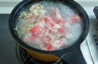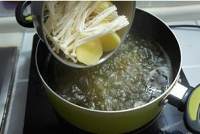 开锅后放入金针菇和土豆片,中火煮十分钟左右