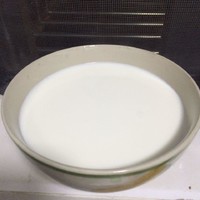 400g牛奶倒在碗里,盖上保鲜膜上锅就似乎一顿猛蒸,大约10分钟