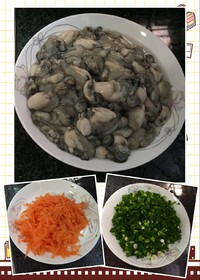胡萝卜去皮切丝 青葱蒜洗净切丁 海蛎洗净