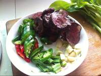 所有的配料准备好,辣椒切斜圈,蒜苗切小段,葱姜蒜切末。