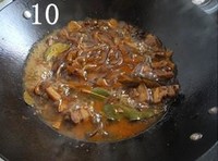 入酱油、醋、花椒、大料、桂皮、香叶、盐等调料炖30分钟
