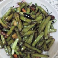 倒入炸好的四季豆,加入盐和味精酱油。炒伴均匀