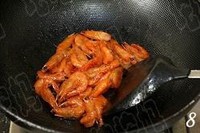 将锅内油倒出,将炸过的虾重新倒入锅内,加入番茄酱