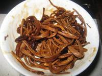 茶树菇提前用清水泡软,洗净,并沥干水;