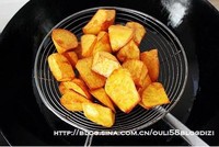 等到红薯成熟,外边一层脆壳即可捞出沥油