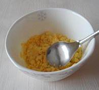 取出的蛋黄放在小碗中,用勺子背碾碎成蛋黄泥