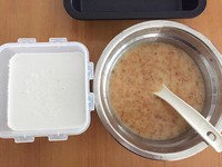 将另外110g的马蹄粉和凉后的糖水一起搅拌,也是到没有粒装即可.