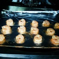 把腌好的虾放入烤盘中,再刷一遍油,170度烤10分钟,翻面再烤5分钟。