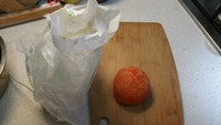 把柿子洗净去核去皮,用搅拌机更好,但我家这个已经很软了,所以直接捣成泥了,加面粉,用量自定