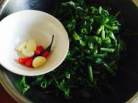 蒜头拍扁,尖椒和空心菜切段