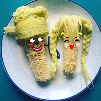 剩下一些比较软的玉米叶,然后扎你自己喜欢的造型就可以了,下锅蒸.........真的好可爱,哈哈哈哈哈