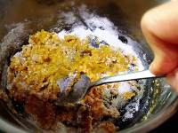 將蒸熟的紫薯、紅薯、南瓜分別用叉子搗碎成泥,這時很燙手,用叉子或小勺分別慢慢和粉。