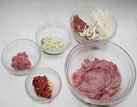 牛里脊片成薄片,加盐、胡椒粉、葱姜汁腌渍20分钟;茭白、香菇、火腿分别切细丝;泡辣椒剁碎;葱、姜、蒜切末;少量牛肉切牛肉末