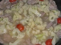 倒入烧好花菜