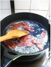 油温5成热,下蒜泥慢慢炒香,火大了,蒜泥很容易焦黄