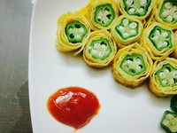 在秋葵中间点上些辣椒酱或番茄酱,就可以