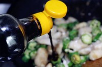 锅中倒入两茶匙生抽。