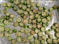 烤箱中层烤15分钟左右,根据自家烤箱脾气增减,差不多就是烤秋葵的边边微微变棕色就可以了。