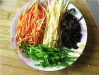胡萝卜,青椒,红薯,黑木耳切丝,红薯丝经过浸泡掉淀粉的了