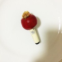 转到山楂根部,笔帽按进去,用力推,山楂核被推出