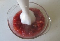 煮好的山楂也用电动搅拌器搅拌成泥