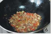 然后下入笋丝丝和黑木耳丝大火煸炒片刻。