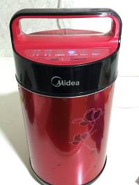 把食材统统倒进豆浆机中,看清楚,豆浆机中的水量刚刚好,少加点水浓稠点更好喝