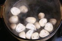 放入准备好的草菇,翻炒,放入调味料,盐、糖、鸡精少许