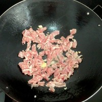 热锅放姜蒜,加油爆热后放入肉片,加料酒盖上锅盖一会。(炒肉片一定要放多点油,否则容易粘锅)