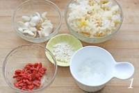 川贝碾碎,银耳、百合、枸杞用清水泡发后清洗滤干,冰糖置于小碗中备用