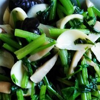 新鲜百合、香芹、杏鲍菇,再加几朵木耳。随意炒。