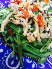 1.把刀豆切丝,用滚水烧熟,刀豆丝一定要熟透。
