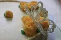 冷藏硬了以后放在蛋糕上的奶油霜玫瑰花旁边