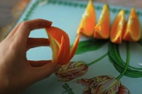 Tip:没什么技巧,因为不难。注意的是,要用一把锋利的刀子,橙子皮不要太厚,不然造型的时候容易碎