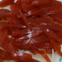 把切好的雪花梨丝和山楂糕丝放入容器中