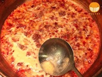30分钟左右,当锅中的水量渐渐减少约一半,酱汁浓缩,果肉变得透明熟软,再持续烹煮直到果泥开始有浓稠感出现,酱汁几乎收干,达到果酱煮糖凝固的终点温度103℃;.之后过滤,将果肉与果汁分开,沥出的果汁部分就是果冻;
