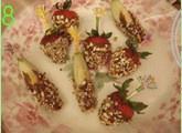 滚”好的草莓放入杏仁颗粒里裹上杏仁粒