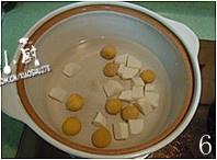 板粟氽汤去皮,鹌鹑蛋煮熟后去壳备用