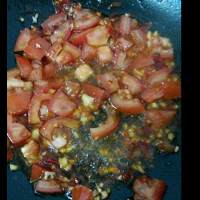 将西红柿切丁,葱花切碎,姜蒜切末备用