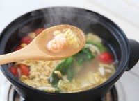 Tip:1、买回的鲜虾不好去壳,可放入冰箱冷冻15分钟左右取出,剥起来就很容易了。 2、食疗功效:“百菜不如白菜”,白菜富含丰富的维生素,秋季空气干燥,皮肤容易受伤,多吃白菜可以护肤养颜。