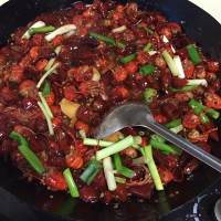 倒入姜、蒜、朝天椒、花椒翻炒2分钟