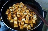 晃动锅子,使调料汁包裹在每块豆腐上,不必翻炒