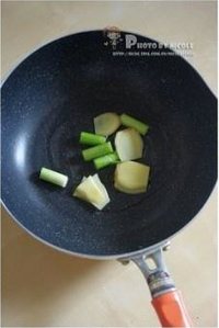 锅中加入少许油,烧热后放入青蒜和姜片爆香