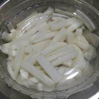一小时后会腌出来很多水,倒掉盐水,加糖和白醋醉24小时左右就可以开吃啦!